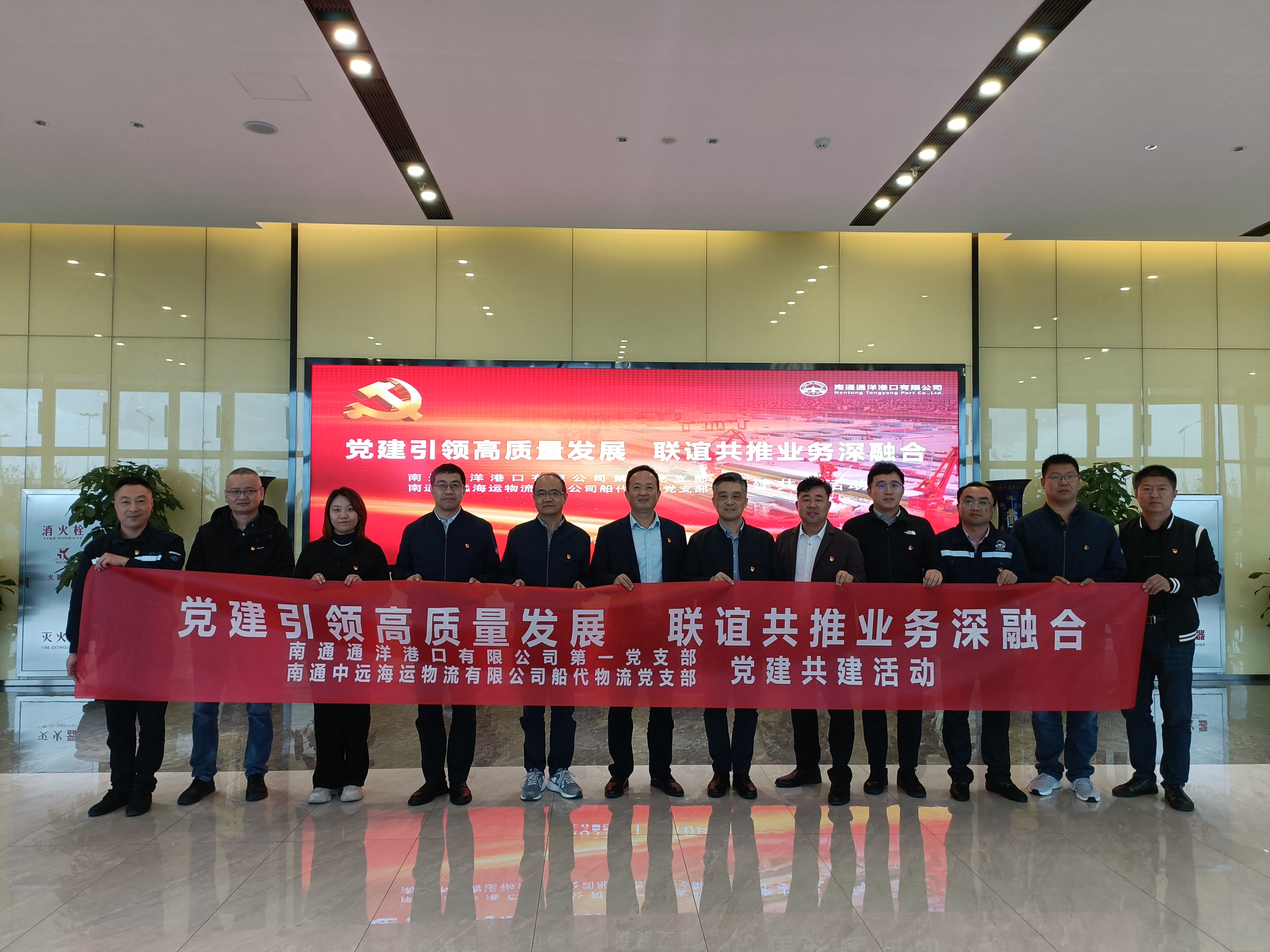 活動當(dāng)天,南通中遠海運物流有限公司船代物流黨支部一行來到通洋公司參觀了港區(qū)及黨員活動室,并開展了黨建共建座談,雙方黨支部就黨建工作、支部品牌建設(shè)、特色亮點工作、后期共建共聯(lián)、業(yè)務(wù)合作及拓展等方面進行了深入交流,推動黨建與業(yè)務(wù)同頻共振、同向發(fā)力。